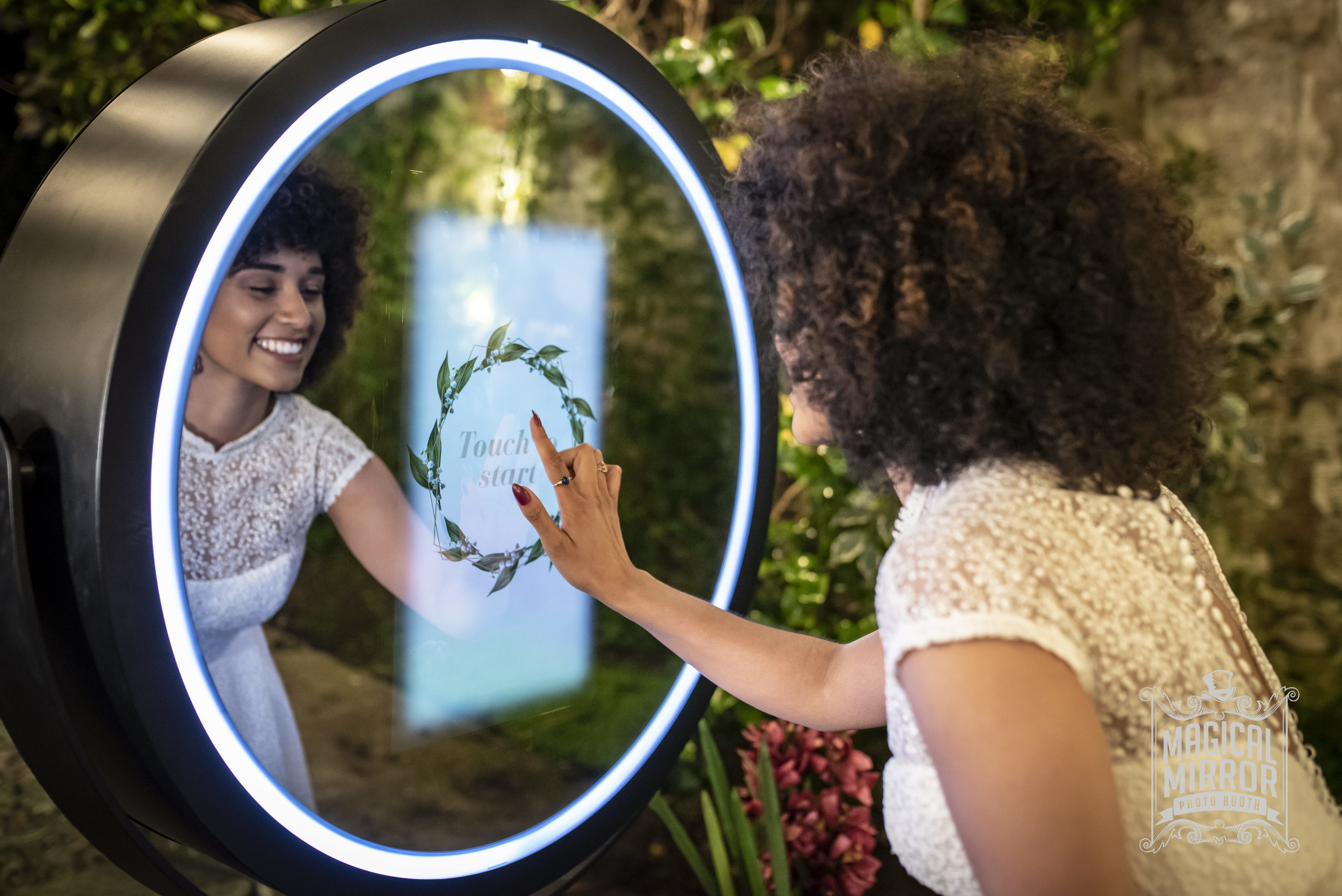 💡 Understand the Beauty Mirror: This selfie mirror is a state-of-the-art photo booth . It sets you apart from the typical photo booth at a wedding, party, or corporate event. The Beauty Mirror has an elegant appeal, and is interactive with your guests.